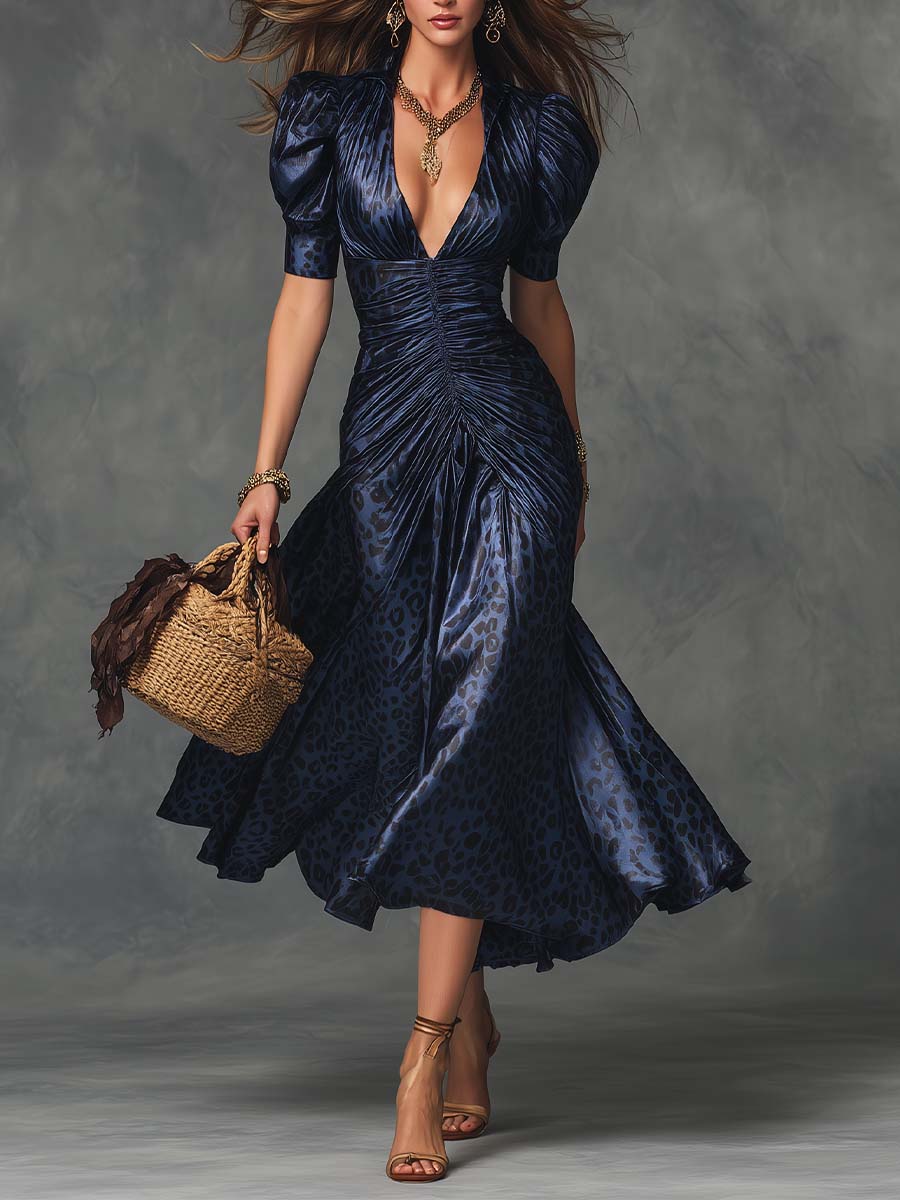 Halter Neck Leopard and Floral Print Midi Dress