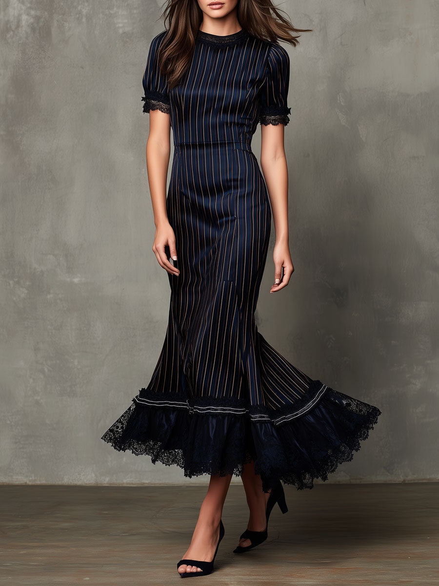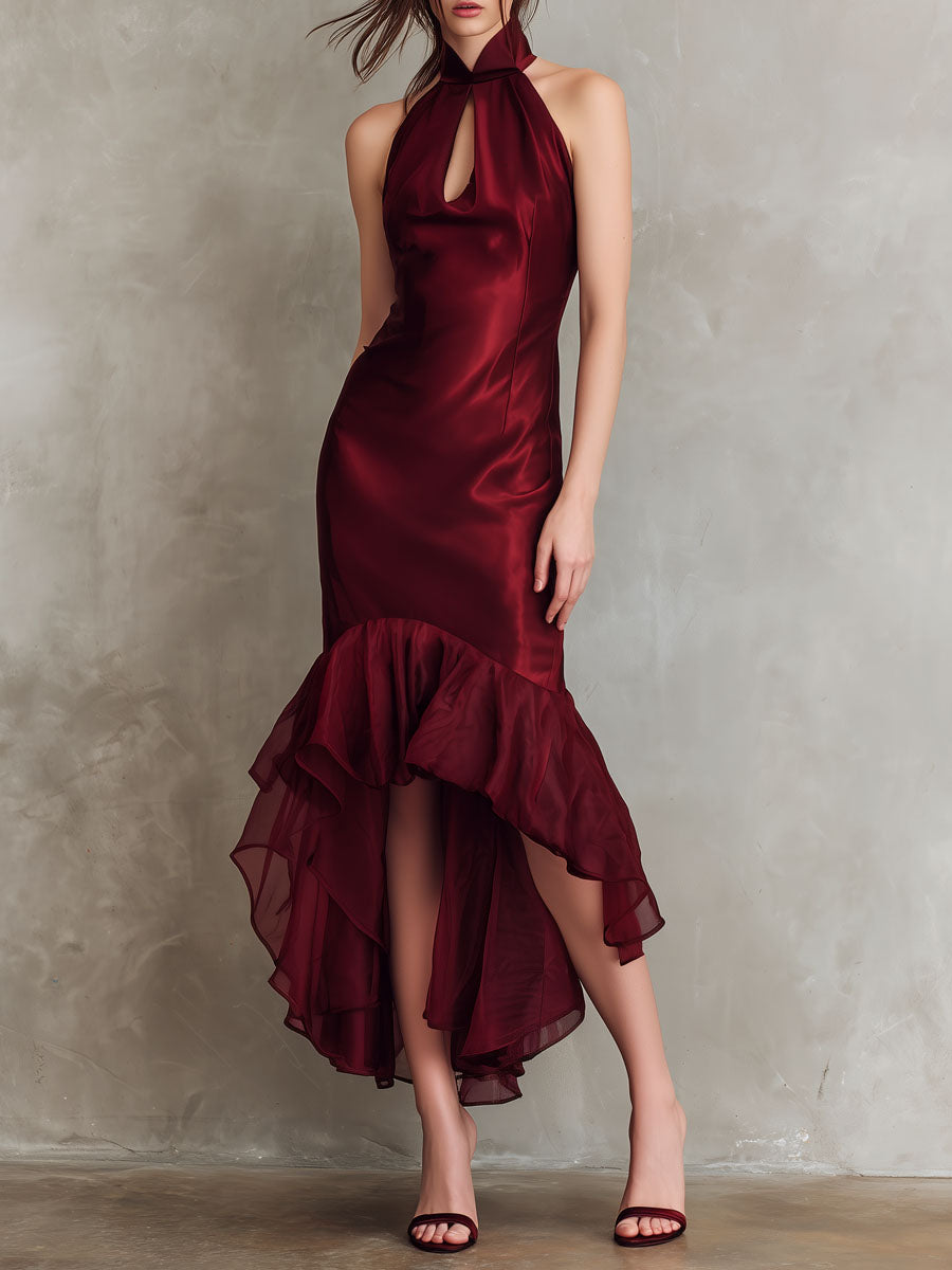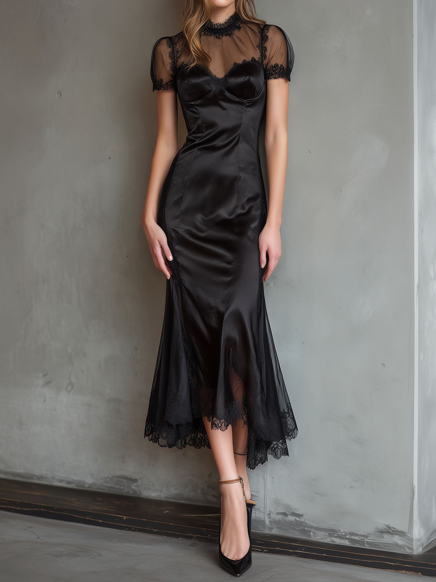 Spiced Wine Red Sparkling Velvet Lace-Trim Mini Dress