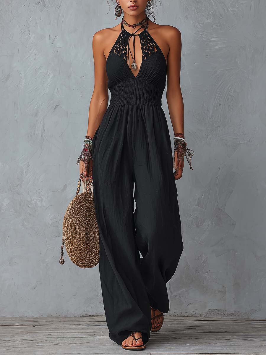 Retro Elegant Lace Stand-up Collar Tie Neck Chiffon Blouse