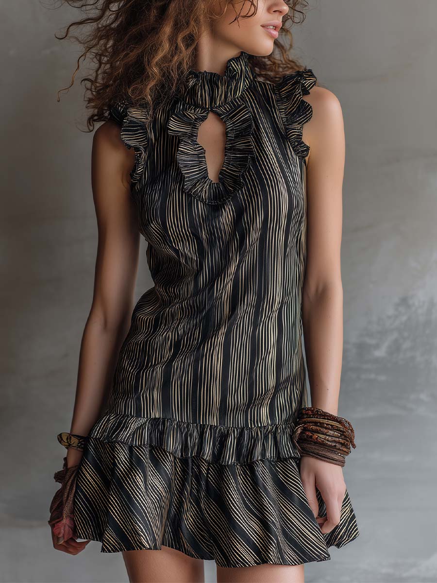 Boho Vintage Striped Cotton Ruffle Mini Dress