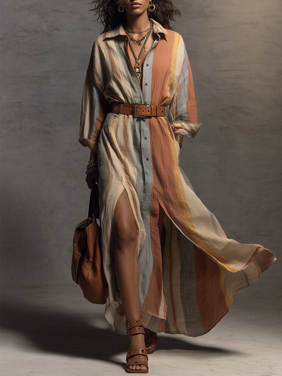 Bohemian Holiday Cotton Blend Colorful Striped Maxi Dress