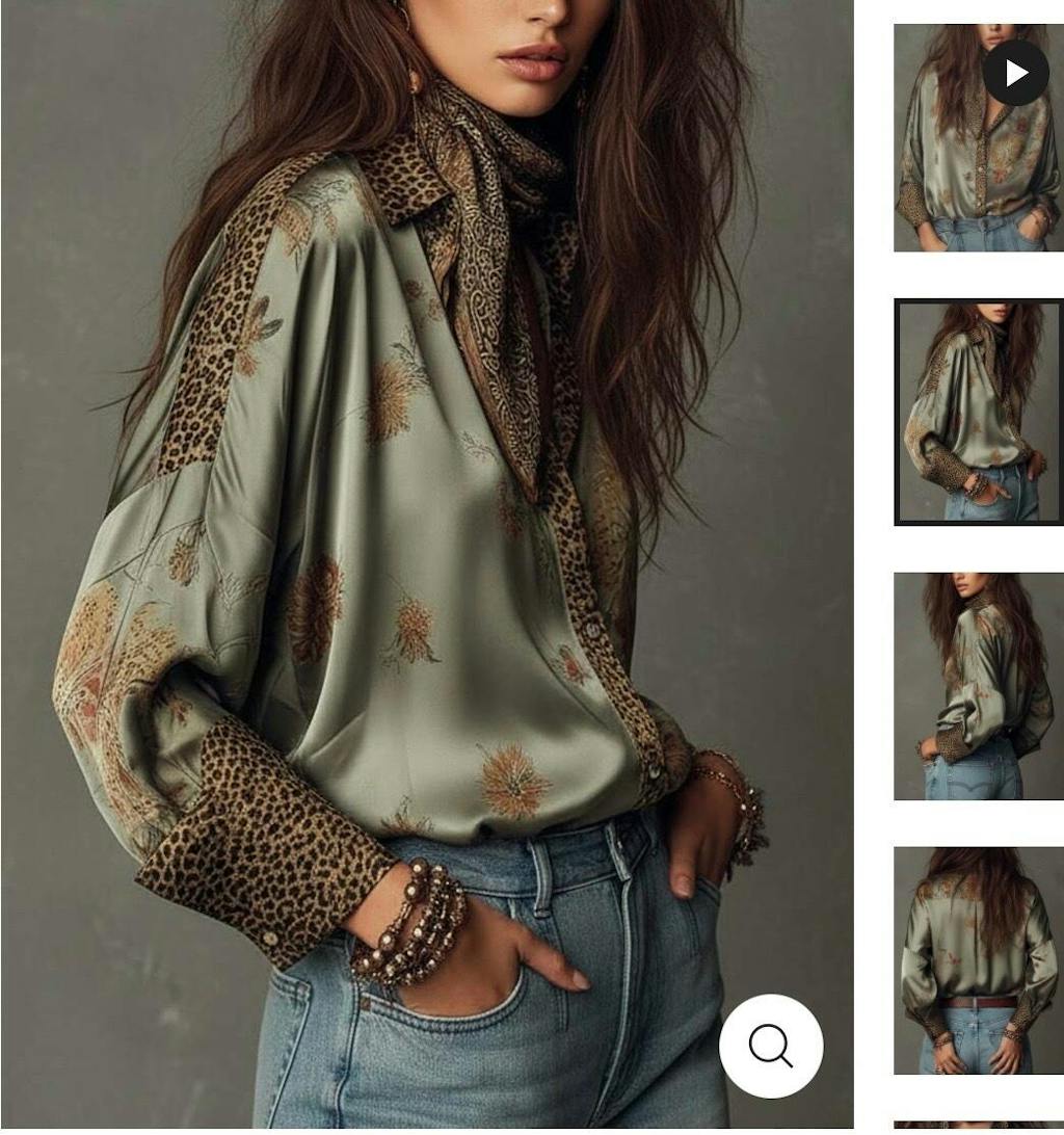 This elevated satin button-down shirt blends vintage floral motifs with bold leopard-print trim, creating a statement piece with a refined yet bohemian attitude. The smooth satin drapes softly across the body, offering a subtle sheen and a fluid silhouette. Leopard-printed details at the collar, placket, and cuffs bring a modern edge that contrasts beautifully with the delicate florals.
