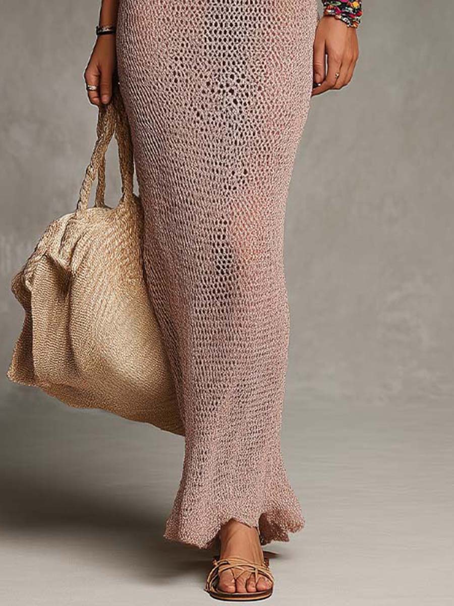 Boho-Vintage Elegant Open-Knit Mesh Maxi Dress