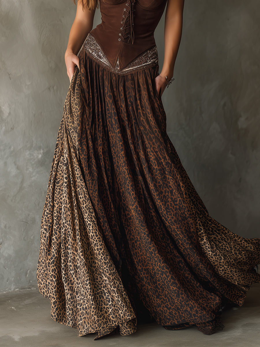 Chic Leopard Pattern Sequin Bodycon Mini Skirt
