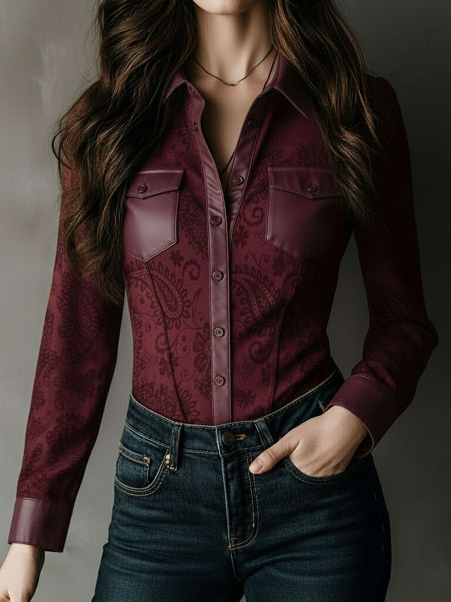 Western Charm Burgundy Paisley Embossed Blouse