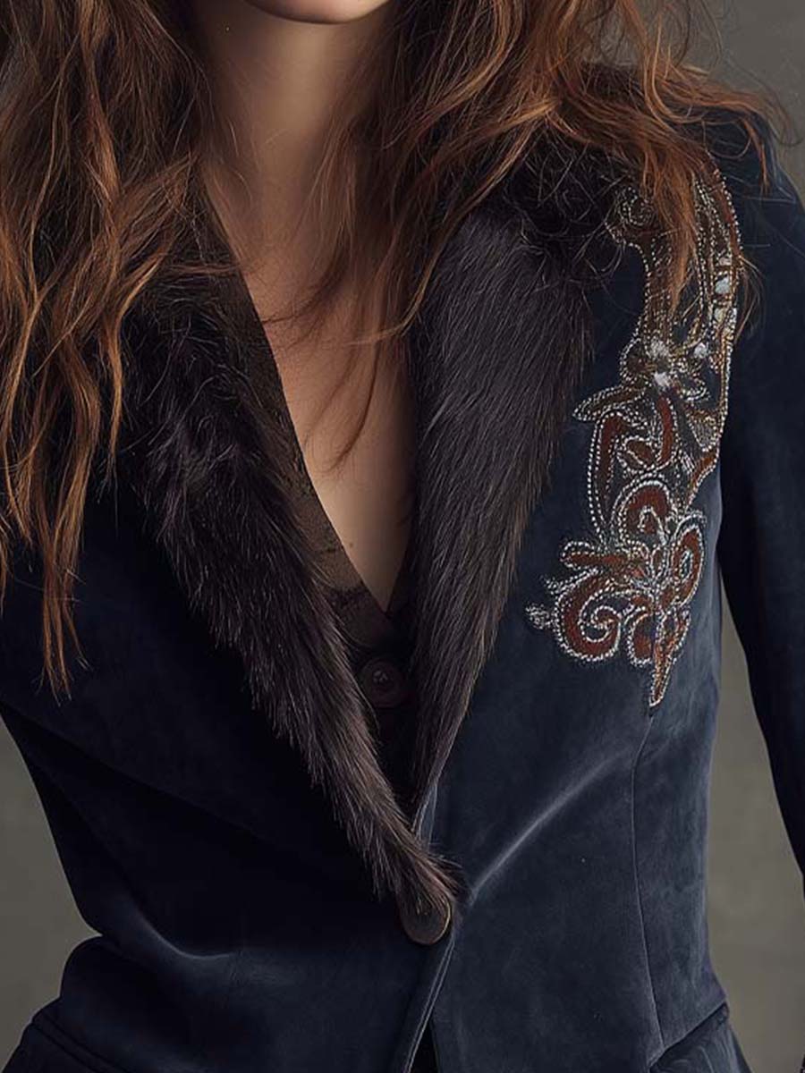 This vest is made of high-quality leather, with a sleek and stylish stand-up collar design. The zipper closure allows for easy wearing and removal. The multiple pockets enhance the functionality of the garment. The cropped design is sharp and fashionable.