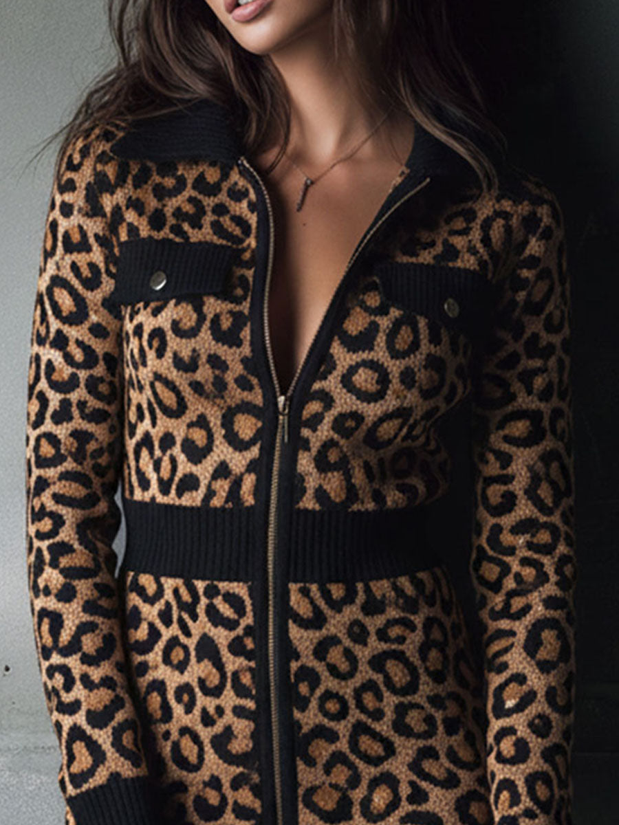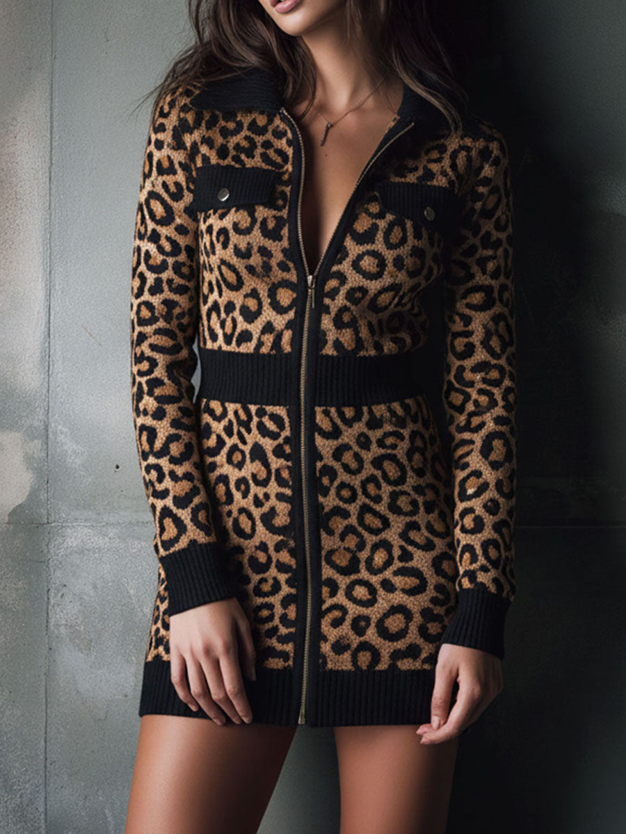 Chic Leopard Pattern Sequin Bodycon Mini Skirt