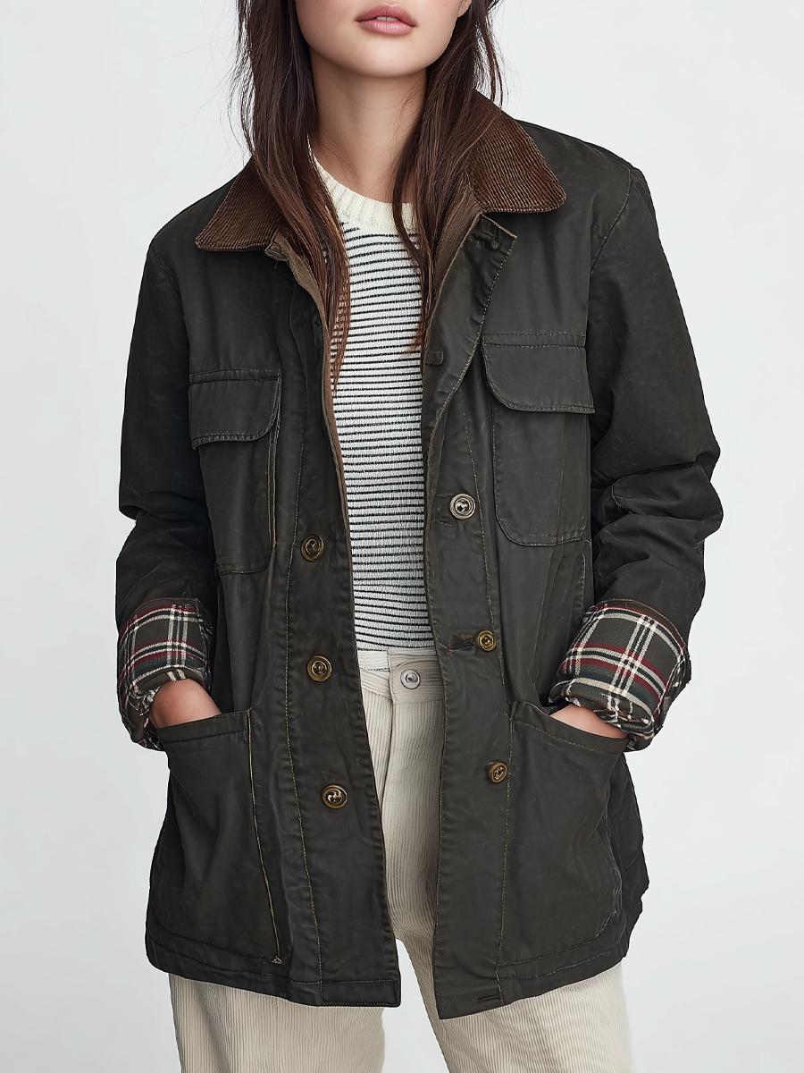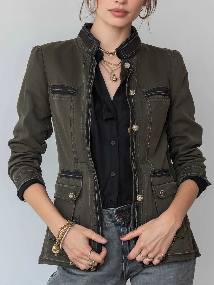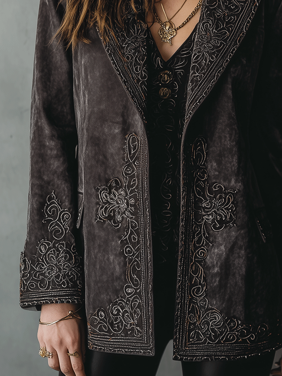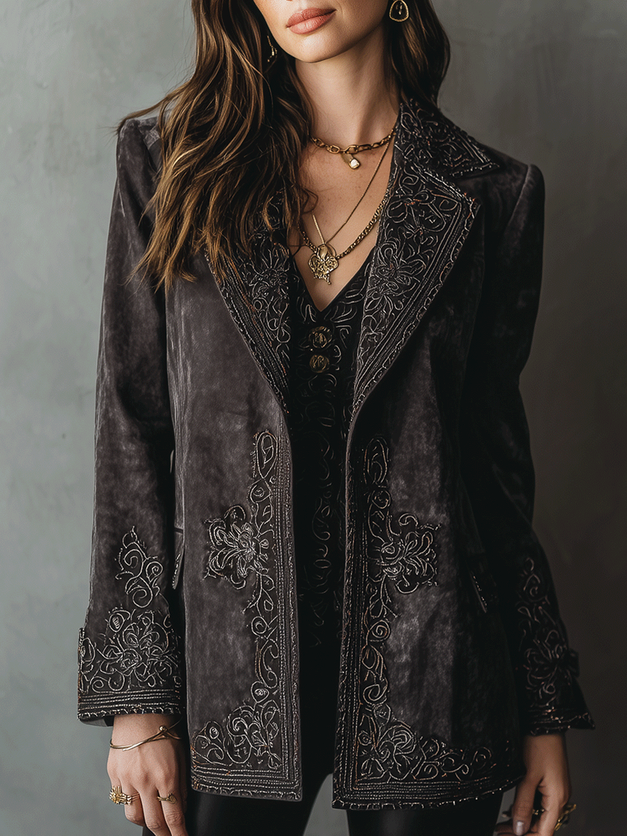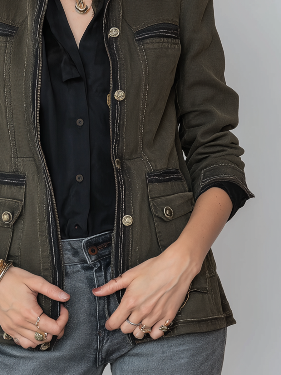 Herringbone Tweed Blazer With Printed Panels