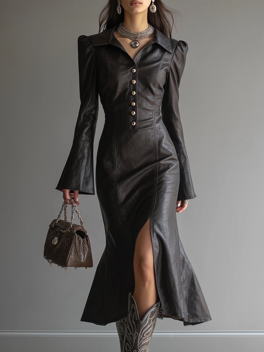 Gothic Romance Black Eco Leather & Lace Mini Dress