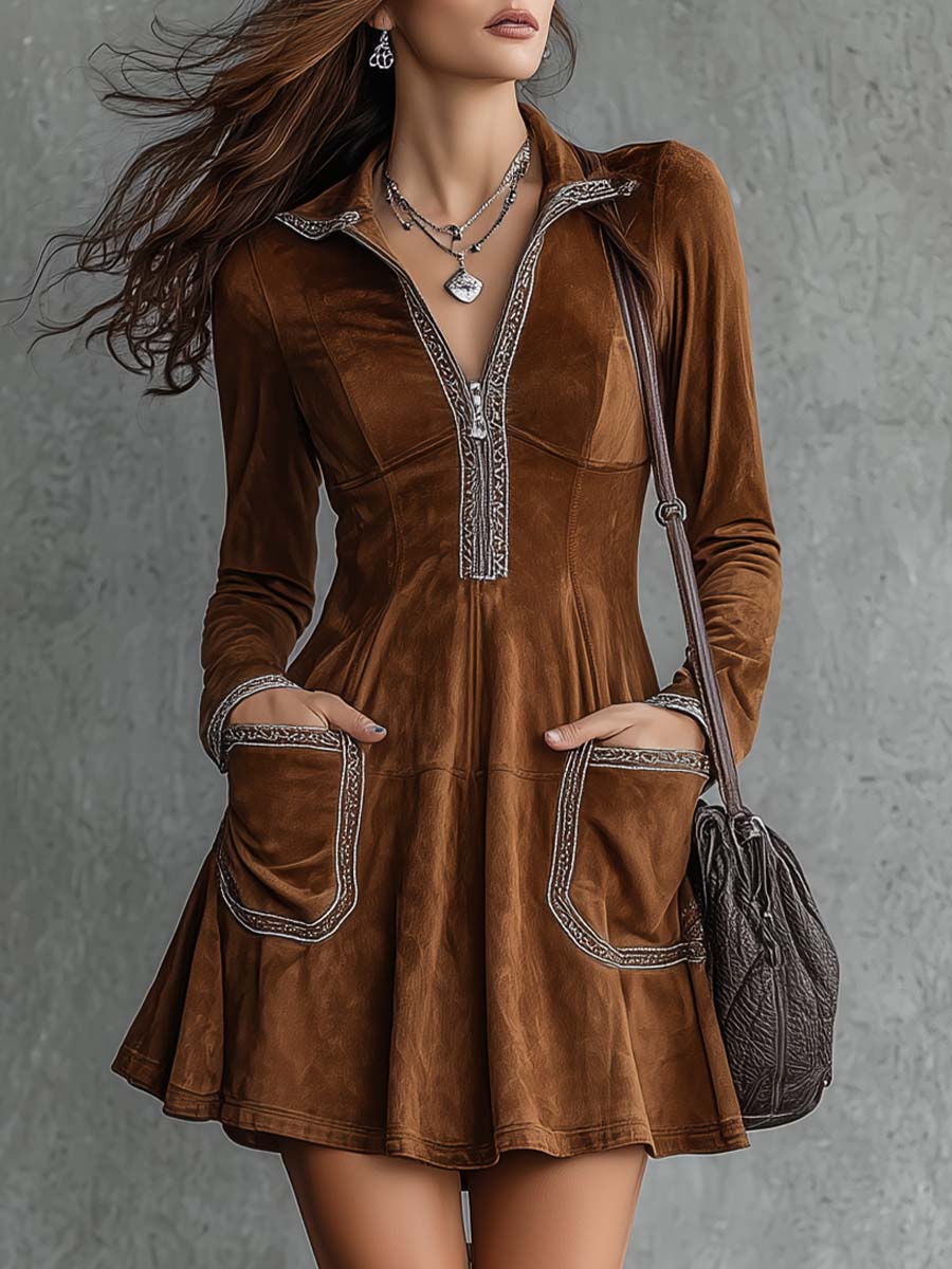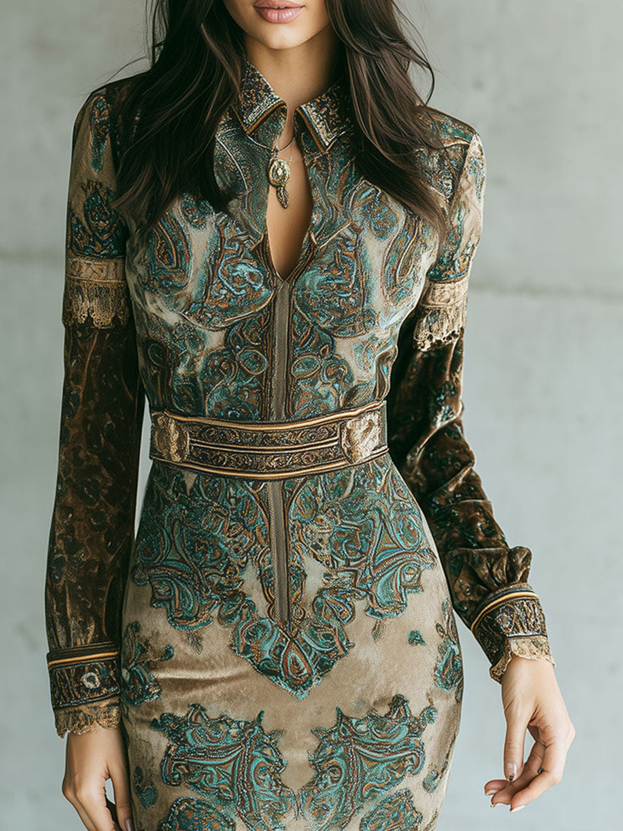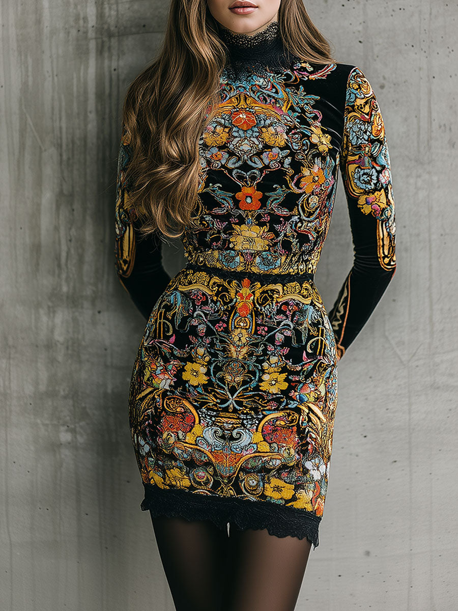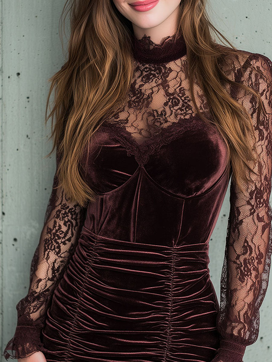Retro-style Lace Irregular Hem Long-sleeved Mini Dress