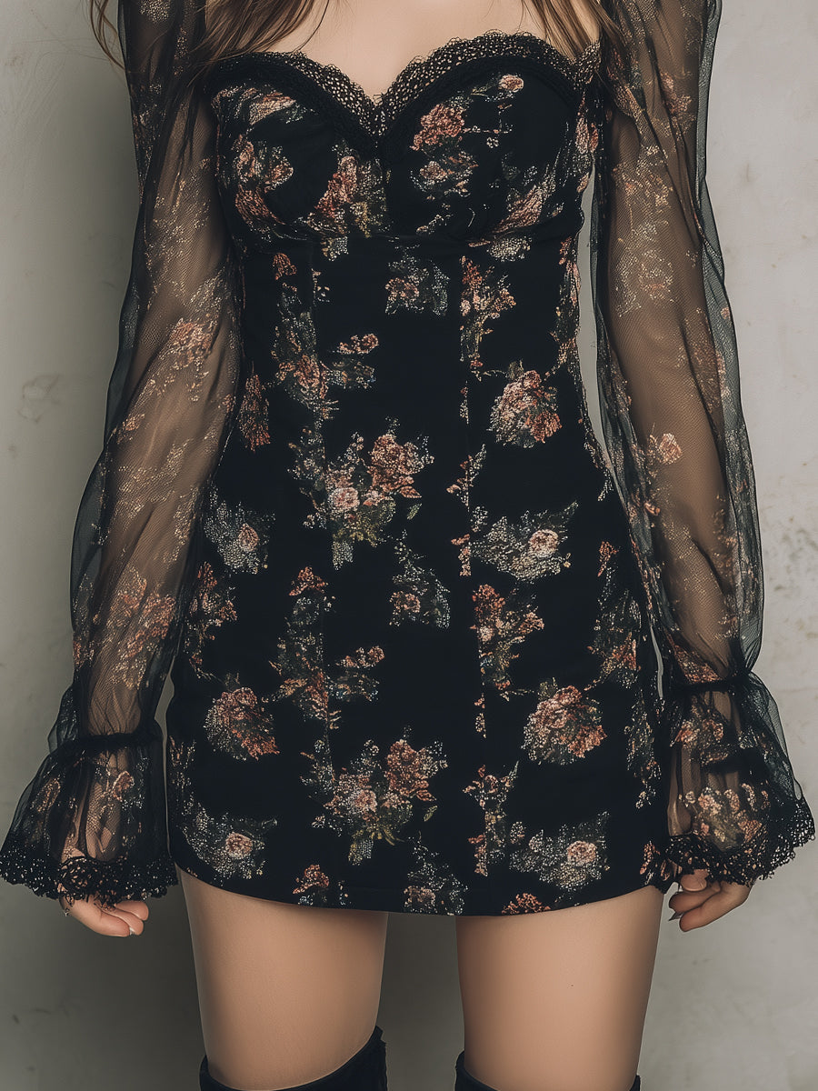 The Elegant Printed Mesh Panel Mini Dress with Lace Trim is a versatile addition to any fashion-forward wardrobe. Its combination of contemporary design elements with classic touches ensures it remains a timeless piece suitable for a wide range of occasions.