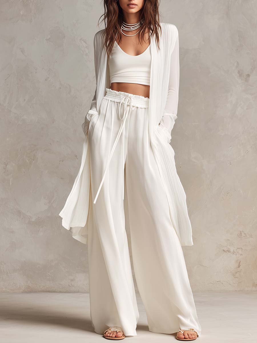 Retro Chiffon Cardigan Elastic Waist Pants Two-piece Set