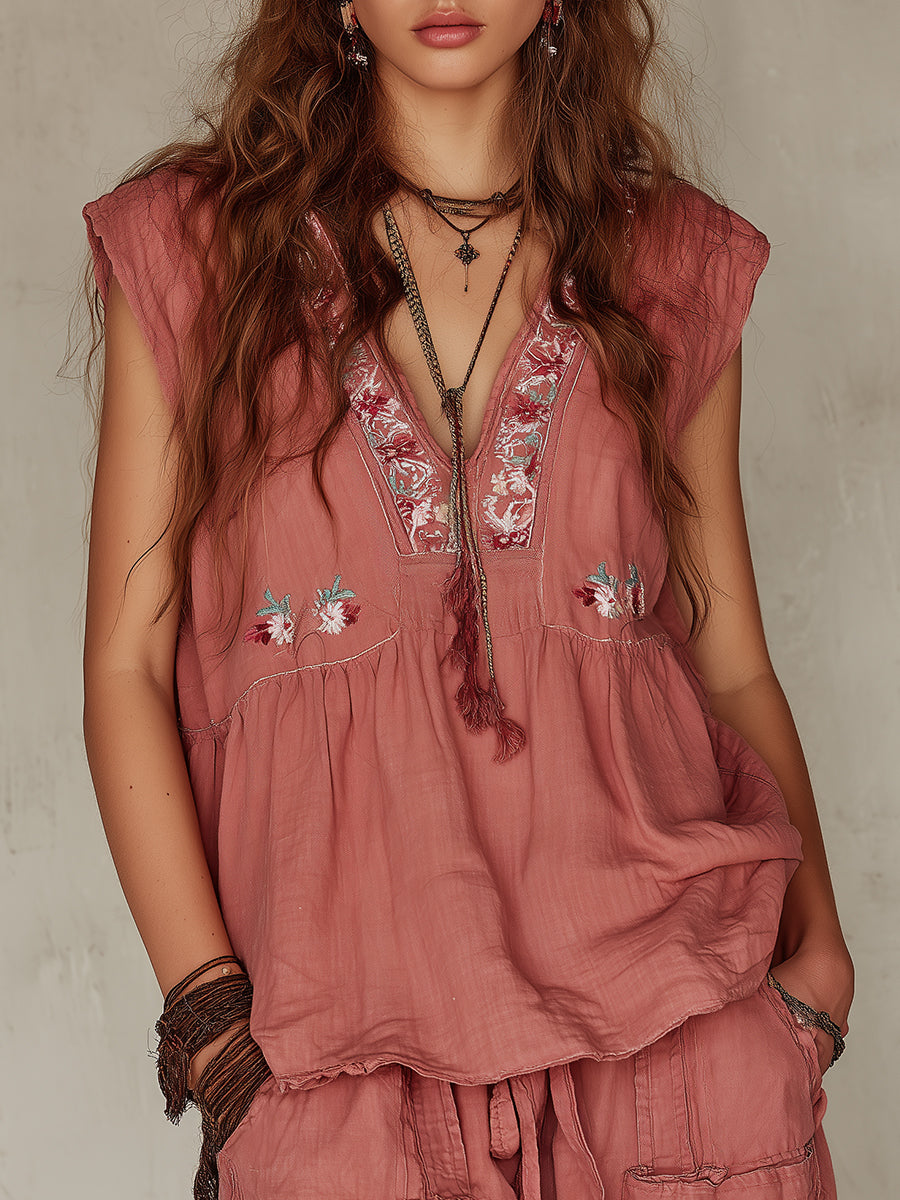 Vintage Navy Polyester Velvet Embroidered Long Jacket