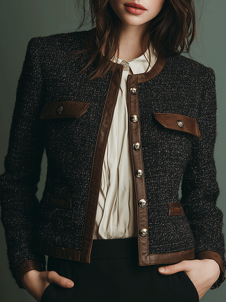 Chocolate Brown Eco Leather Zip-Front Mini Dress With Utility Pockets