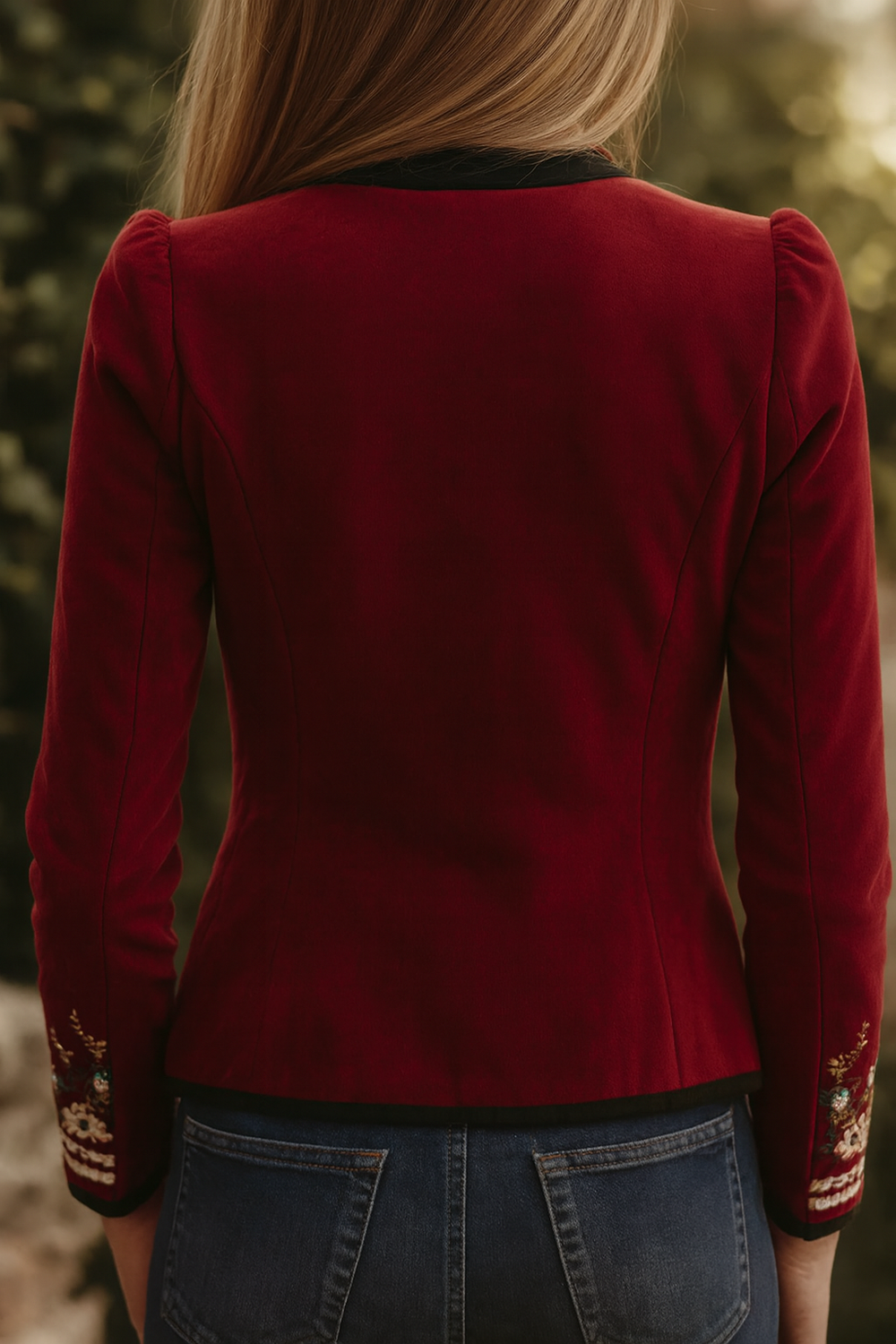 Vintage Herringbone Tweed Blazer With Velvet Trim