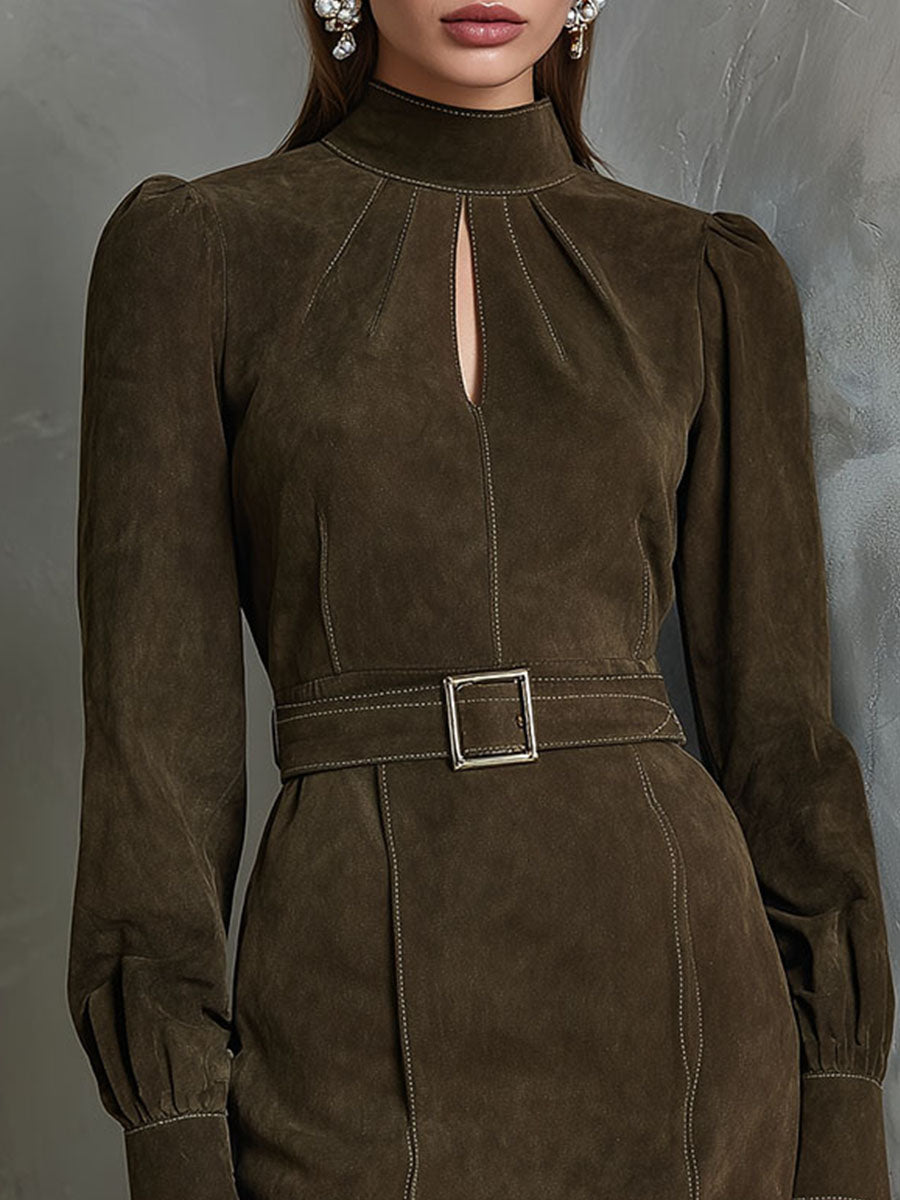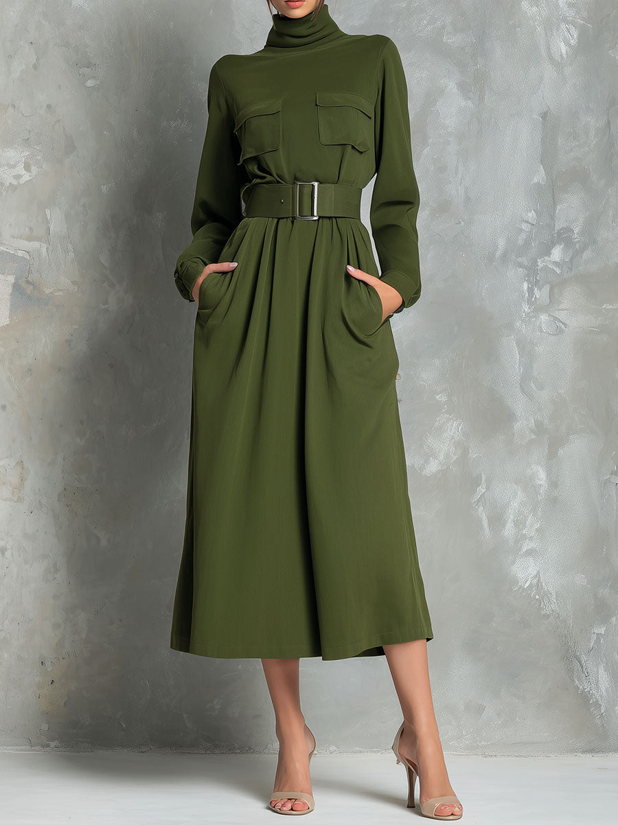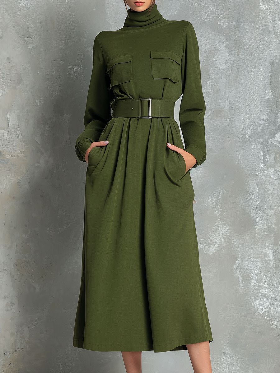 Black Contrast-Trim Ribbed Half-Zip Midi Dress