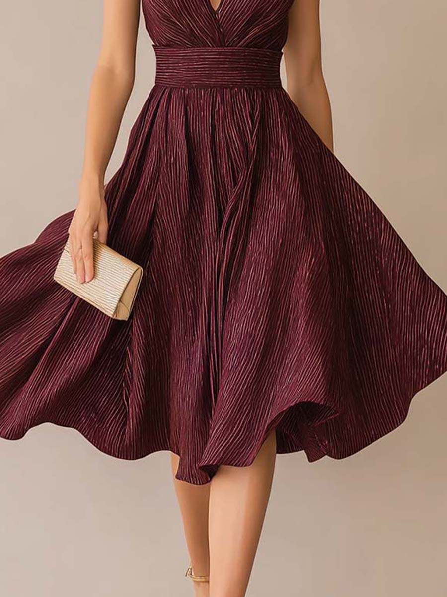 This sleeveless pleated midi dress captures timeless vintage elegance with a confident, modern silhouette. Designed in a rich Wine Burgundy, one of the key 2026 trending shades (deep romantic reds and refined jewel tones), it delivers understated glamour with seasonless appeal.